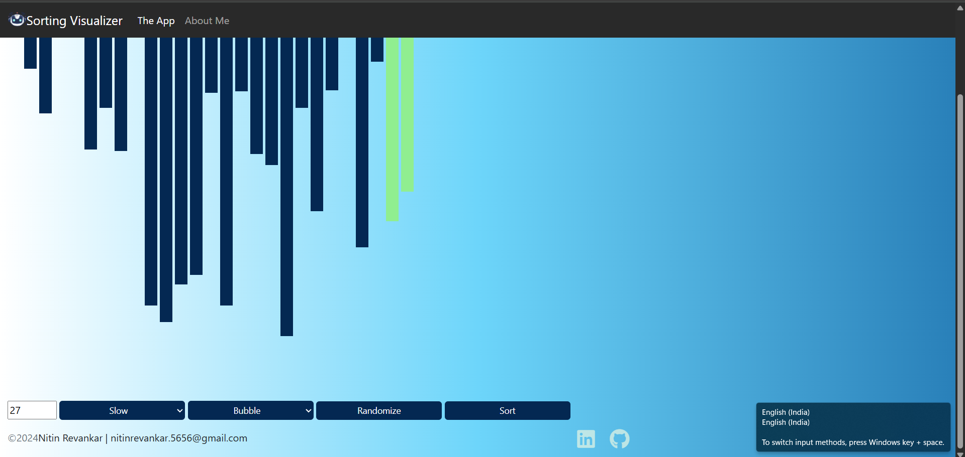The Sorting Visualizer is a dynamic, interactive web application built using HTML, CSS, and Vanilla JavaScript that visually demonstrates how popular sorting algorithms work. It allows users to observe and compare the internal processes of sorting techniques in real-time through animated bar graphs.